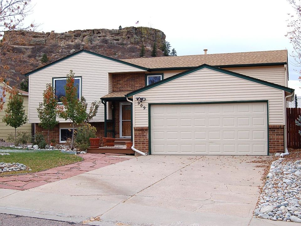 This home has 2400 finished square feet and has been updated with granite counters, tile and hardwood flooring. The kitchen features stainless appliances, new cabinets, dining area and leads out to a large 3 level Trex deck with great views of the Rock and mountains. There is a wood burning floor to ceiling brick fireplace in the living room. Never run out of hot water with the tankless water heater! There is a huge master bath with radiant heat tile floors, jetted tub, separate tile shower and wardrobe area. New flooring has just been installed in the lower level that can be used as a family room, home theatre or recreation room. The backyard is large, has a storage shed and is completely fenced in with access to a walking trail. 2 car attached garage with openers. Rock Park is steps away and there is easy access to I25 and shopping off Founders Pkwy. We are pet friendly! Please take time to view the many photos of this great property. This property is available for immediate occupancy on Jan 21, 2017. 6 or 18 month lease ok. Tenant pays all