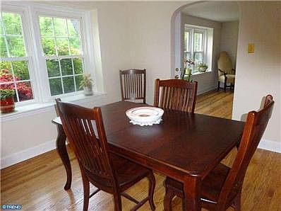 Expanded colonial with 2 story addition which provides an extra large kitchen family room full bath and first floor laundry. Kitchen has breakfast bar island with double sink. There is a 4 burner GE gas range and an additional Jenn Air cook top. Deep window sills. Plenty of light through the replacement windows. Upstairs there is the possibility of a 4th bedroom instead of the double sized master that is currently in place. Meantime enjoy the two walk in closets in the master! The hall bath was expanded and redone an opens to the master bedroom. The whole house has just been freshly painted and the hardwood floors are gleaming. Lots of additional ceiling lighting has been installed in the master bedroom family room and kitchen. All appliances are included. Look out your front door onto Powder Mill Park providing plenty of opportunity for fun and play and yet someone else does the maintenance. Side patio for grilling and entertaining off the family room and plenty of privacy in the back yard. Walk to train location in a very popular neighborhood. This is the one to see!