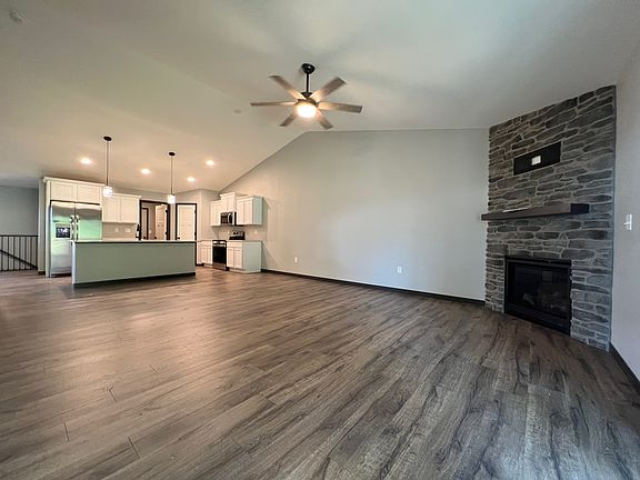 Like new zero lot has white kitchen cabinets, quartz/granite counter tops, stainless appliances, breakfast bar, and pantry. Corner gas fireplace in the living room has floor to ceiling stone with a mounted TV. Covered deck off the living room with steps to the ground. Primary bathroom has a private bathroom with double sinks and a walk-in closet. 2 bedrooms on the main level and 2 bedrooms in the lower level. LVP flooring throughout the main floor areas, vinyl plank in the bathrooms, and carpet in the bedrooms, stairs, and rec. room. Dark cabinet color in the bathrooms. Dark trim throughout. The lower level has 2 bedrooms, 1 bathroom, plus storage. Washer/dryer included. West Branch is a great location! Tenant pays utilities and is responsible for lawn care and snow removal. Pets are allowed with a pet deposit equal to one month's rent. There is a $40 application fee that covers the background and credit check.
