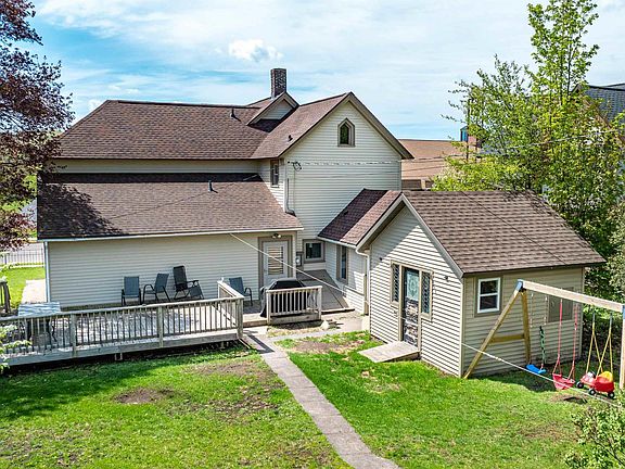 CHARACTER AND CHARM! Spacious 4 bedroom, 2 1/2 bath home on 3 city lots in the heart of West Hancock! With over 3,000+/- square feet of living space, this classic two-story home offers generous room sizes, original woodwork, built-ins, leaded glass, and some beamed and high ceilings. The main floor includes a large living room with gorgeous built-in and glass cabinetry, formal dining room, family room, kitchen, laundry area, half bath, primary bedroom suite with a full bath and enclosed front porch. Upstairs you’ll find three bedrooms, full bath and ample closet space. One of the bedrooms upstairs is especially spacious with area that is great for an office or sitting area. The attic is accessible by stairs and provides additional storage. The property fronts both Quincy and Ohio Street, with the garage being accessible from Ohio Street. There is a great back deck and side yard that is mostly fenced. The detached 3-car garage has plenty of space for parking and storage. There is an additional storage shed (12x13+/-) with wood floor and electricity. Main house roof was done in 2024 (excluding porch and addition). The heating system was new in 2020. Home is situated on a corner lot just in close proximity to near downtown Hancock, Keweenaw Co-Op and other shopping, dining, schools, and recreational trails. Swing set not included. NOTICE: All information believed accurate but not warranted. Buyer recommended to inspect & verify all aspects of the property & bares all risks for any inaccuracies including but not limited to estimated acreage, lot location/size, square footage, utilities (availability & costs associated). Real estate taxes are subject to change (possibly significant) & municipality reassessment after sale. Buyer should NOT assume that buyer’s tax bills will be similar to the seller’s current tax bills. Audio/video recording devices are present on the exterior of the property and entering the property shall be considered consent to be recorded. OFFERS: 72 hours response time requested on offers. Seller, at seller's sole discretion, with or without notice, reserves the right to set and/or modify offer submission & response deadlines.