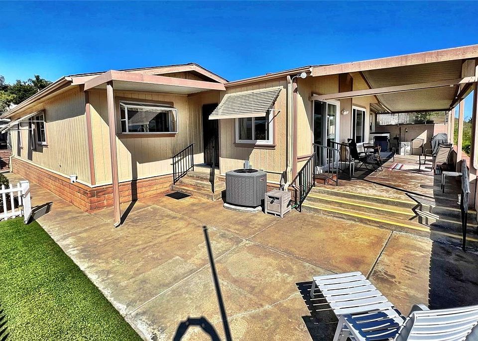 Enjoy INCREDIBLE VIEWS in this 2 Bedroom, 2 Bath, including Den/Office flex space, Manufactured home. The home features Newer Hardwood Flooring, Stainless Appliances including New Thermador Gas Stove, KitchenAid Combination Wall Oven with True Convection and Microwave, GE 3 door Refrigerator with water and ice maker, and GE Dishwasher. The kitchen has been remodeled including new cabinets and Staron* Countertops and Sink. You'll find oversized rooms throughout the house with an open floor plan (Approx 1870 sq ft), including ceiling fans in every room. The laundry area includes a new stackable Gas GE washer and dryer combo, wash tub, and ample cabinets for storage needs. Relax in the shade under the large covered patio, or step into the sunny uncovered patio as you enjoy the over 220+ degrees of views overlooking San Marcos, Escondido, Vista and Carlsbad. These patio spaces are also gated on two sides, and include a small area of artificial turf, should you have a small pet. Included is a small storage unit for outdoor patio items. Upgraded dual pane Vinyl windows are found throughout the home. The HVAC system has been completely upgraded and kept on a bi-yearly maintenance plan (serviced 9/2022), should you ever need it in this climate wonderland. The home includes a covered carport for up to 3 cars including a walk-in storage shed/workshop. The exterior of the home has been completely repainted recently including the block walling. Located in the “Foothills of San Marcos” a Senior Living Community (55+), this park offers many amenities including, Swimming Pool, Clubhouse, Tennis Courts, Recreational Facility as well as covered RV parking, and frequent social events if you choose to participate. In addition, the park has installed large solar collectors which help to reduce your monthly electric bills. Come see how life was meant to be enjoyed relaxing on your patio, enjoying the cool ocean breeze, while taking in the gorgeous views.