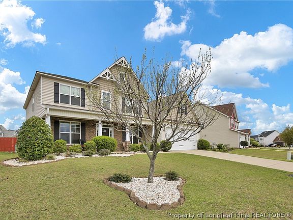 Come view this beautiful two story home nestled on a corner lot, located within minutes of Ft Liberty/Bragg, shopping and 295. This home offers 5 bedrooms and 3 1/2 baths. Downstairs Owners Suite, includes trey ceilings, & bath with garden tub, dual sinks, water closet, separate shower, and walk in closet. Office/formal living room, formal dining room with decorative trey ceiling and wainscoting. Kitchen offers granite countertops, island and eat-in area, SS Appliances (to include a double oven). The great room is just off the kitchen and has a gas log fireplace and ceiling fan. Upstairs offers 4 bedrooms along with 2 full bathrooms and, a loft/bonus room/tv room. Covered back patio and side entrance inside the 6ft privacy fenced back yard. No A/C 2022