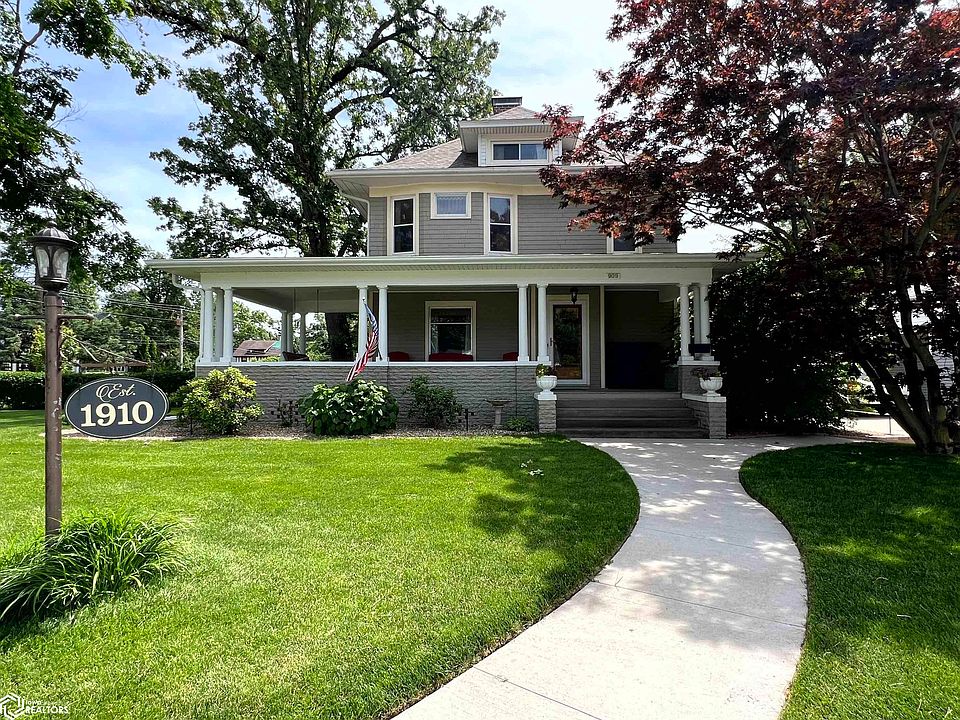 A remarkable 3 Story property with over 3300 sq ft of living space on a well manicured .44 acre lot with 3 car garage & inviting wrap around porch plus side deck. Original hard wood floors, quarter sawn oak, beautiful fixtures, many new windows & original leaded glass & an abundance of build-ins are found in this amazing home. The original front door entry opens to the spacious Living Room w wood fireplace, leads to formal dining & Family room. A totally update eat-in Kitchen with stainless appliances & an abundance of cabinets & corian counters. A 3/4 bath & 4 seasons room with electric fireplace completes the first level. Level 2 with maple woodwork includes the master bedroom with fireplace, Bedroom 2 w closet built-ins, bedroom 3 that leads to what was originally a sleeping porch, now finished. The third floor is a multi-purpose room that is currently an office w 2 window seats, but was formally used as a 4th BR with closets. The lower level serves as a theater room with custom built-ins, 3/4 bath, & storage room. The entire basement has been tiled and has radon mitigation that was installed this year.