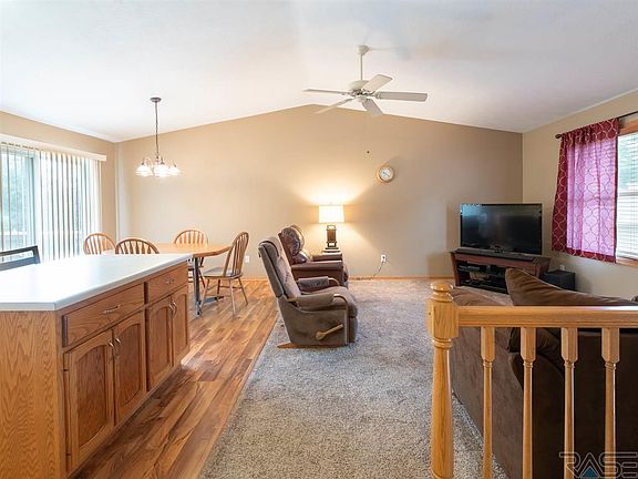Sharp split-foyer in east Sioux Falls! Open concept with a spacious living room, inviting kitchen with beautiful Dakota Kitchen & Bath cabinetry with a large center island, & dining room with slider to the deck perfect for those upcoming BBQs. The main level is complete with a master bedroom, 1 additional nice-sized bedroom, & a full bathroom. Step down to the expansive lower level family room with a walk-out to the backyard, 1 additional bedroom, a full bathroom, storage, & laundry/mechanical room. Oversized 2 stall garage, mature landscaping, & plenty of privacy! Ready to move in and call home!