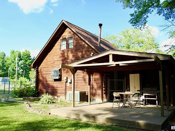 This cozy log cabin sits on the very edge of town and just blocks away from the city park. A very low traffic street leads to the double lots that this home sits on. A large fenced backyard offers plenty of shade and the covered back patio is perfect for gatherings. Inside is beautiful hardwood flooring throughout the main level and wood finishes everywhere you look. Truly a unique and beautiful home. Attached carport with storage shed connected as well as a detached storage shed is included. Don't wait around on this one, schedule your showing today!