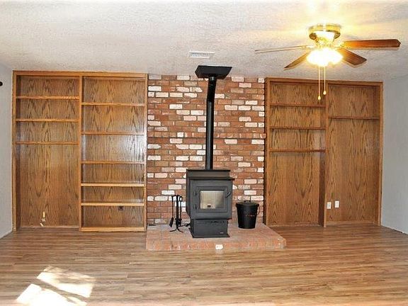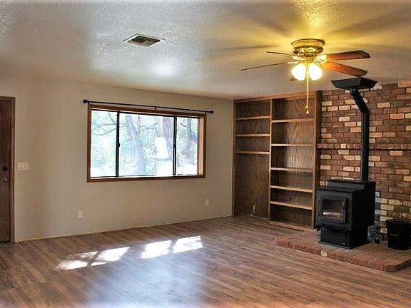 Huge backyard with an abundance of trees. This 2 bedroom, 2 full bathroom home sits on a cul-de-sac and features 1,750 sq. ft. and a 2 car garage. The living room features built-in shelving and a pellet stove for efficient supplemental heat. There is also a family room for additional entertainment space. The kitchen features cabinet space galore as well as a gas range. Both bedrooms have walk-in closets for extra storage space. Outside you'll find covered front and back porches, a large fully fenced backyard and a storage shed perfect for a workshop or extra storage.