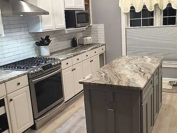 - RoomKitchenFeatures: Granite Counters, Breakfast Bar, Work Island, Range Hood, Stainless Steel Apps.