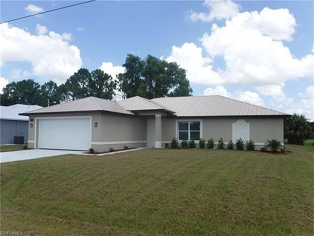 Location, location, location!! Golf Course and a dead end street! No monthly association/membership dues for being on the golf course!!! New Construction and ready to move in!!! Bring your fussiest buyer. Close to great schools. Fluid design with split bedroom floor plan. Metal roof! Beautiful granite counter tops throughout. Matching stainless steel appliances. Glass top range, refrigerator with ice maker, dishwasher, built-in microwave. Garbage disposal. Laundry room. Owner's suite has His/Her walk-in closets and dual sinks. Storm Panels. CBS Construction. Huge screened in lanai. Note: Currently, there are Central water, sewer & irrigation assessments.
