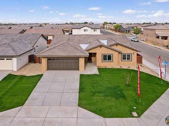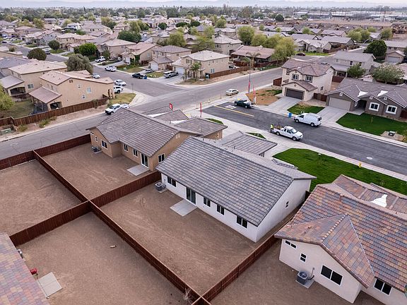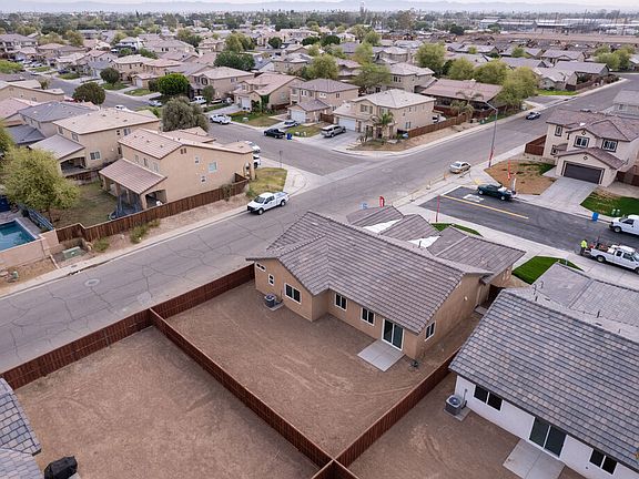 This brand new, single story home in Brawley is sure to impress. This great room opens to the dining and kitchen with a powder room for guests. Shaker cabinets and quartz countertops provide an elegant, modern look. Stainless steel appliances include a stove, microwave, and dishwasher. The primary bedroom has a large walk-in closet and en suite bath with dual modern sinks and hardware throughout the house. Updated floorings include ceramic tile, designer carpet, and custom tile floors. The front yard is landscaped with grass and drought-tolerant plants that are watered by an automatic drip system. Furthermore, this home offers extended energy savings compared to homes of similar age due to its new construction status. It is within walking distance of shopping, dining, entertainment, Pioneer Medical Center, and schools which makes it ideal for anyone who loves convenience! Interior photos are of model homes; this one will be ready for closing within 30 Days!