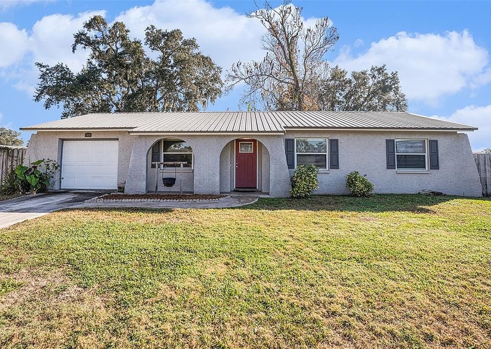 Welcome home! This beautifully recently renovated 3-bedroom, 2-bath home with a bonus/laundry room sits on a huge oversized lot—a rare find and getting harder to come by every day. Perfectly located near schools, shopping, and major access roads, this home offers both convenience and freedom. Step inside to a stunning new kitchen featuring 42” upper cabinets, stainless steel appliances, granite countertops, and a glass tile backsplash, ideal for entertaining or everyday living. The home shines with so much to offer - newer baseboards and trim, updated doors, ceiling fans, and LED recessed lighting throughout. Enjoy porcelain wood-plank tile in the main living areas and new flooring in bedrooms for comfort and style. Major upgrades include a long-lasting metal roof (40+ year life) and a brand-new AC system installed in 2025, delivering energy efficiency and peace of mind. Both bathrooms have been tastefully updated with modern finishes and clean, timeless design. Relax on the screened rear lanai overlooking the massive, partially fenced backyard—perfect for pets, play, or future expansion. And the best part? NO HOA! Bring your boat, RV, work trucks, or toys, this property gives you the freedom most communities don’t. Homes like this don’t last and sellers are motivated! Updated, oversized lot, no HOA, and move-in ready—schedule your showing today before it’s gone! All measurements are approximate, buyer to verify.