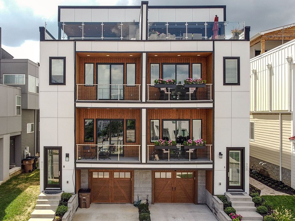 This outrageously fantastic four-bedroom, four-bath home is in the "South Gulch" and offers the most staggering view of the skyline. Way better than new with so many incredible upgrades, including a retractable "screened porch" on the top deck and a two-car garage where you could eat off of the floor. 540 square feet of balconies/decks! Fenced back yard, and two wine bars.