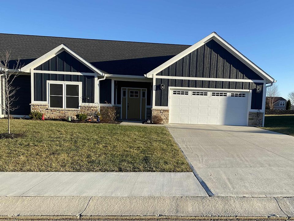 Gorgeous, single-level condo built in 2022. Open floor plan, 1750 Sq. Ft., 3bd,2ba Vaulted ceilings, Amish crafted cabinetry, Quartz countertops, Fireplace, LVP flooring, high-end stainless steel appliances, USB ports in all bedrooms, living room, and kitchen. Large 2 car garage with key pad. Upgraded larger patio improvement wired for hot tub installation. This condo is well appointed with all the conveniences of modern living. Low HOA fees. Conveniently located between Bloomington and Bedford. 20 minutes to westside of Bloomington, 12 miles to Bedford GM Plant, 30 minutes to Crane Westgate. Stonecrest Golf course living!