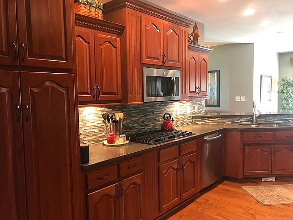 Beautiful custom brick ranch with newer hardwood floors '17, updated kitchen with granite counters, backsplash, stainless appliances 17', freshly painted interior 17', 14x15 office with pocket door, large deck attached, walk-up attic for storage. Partial unfinished basement. Presidential roofing (45years) (generator hook-up that powers kitchen and master bedroom.) Leaf guards on gutters, audio speaker system throughout home except back bedroom. Master bath shower door 2022, gas fireplace in living room and master bedroom. Landscape night lighting. Security system, water hook-up in garage and 2 sump pumps.
