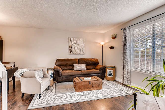 Darling Townhouse in Highly Sought after Highlands Ranch is Seeking New Owner. When you enter the home you will be greeted with engineered wood floors and a custom ledge stone wood burning fireplace. There is also a breakfast nook next to the family room, a laundry closet and a powder bath. Upstairs both bedrooms live like dual Masters with ample closet space and private bathrooms which have recently been updated with new tile. The full upper level bath also has a new vanity and bathtub. This end unit home has abundant light, a front patio and a gated back deck with a storage closet. The 2 reserved parking spaces are directly behind the back gate, one of which is a carport. The Master HOA gives residents access to the multiple Recreation Centers in Highlands Ranch. Don’t miss your chance to call 909 Summer Drive Home. *Per HOA, Owner Occupied Buyers Only. Complex is FHA approved*