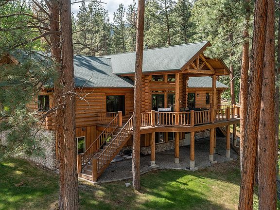 Welcome to Sweathouse Creek Retreat! Escape from reality while taking in the tranquil setting of this rustic, yet elegant handcrafted custom-built Alpine log home, tucked up against the base of the Bitterroot Mountains on the valley’s west side and nestled in the pines on 9.93± acres with Sweathouse Creek flowing right out your backdoor. The interior design boasts pride in craftsmanship with high-end finishes throughout, such as 10’ logs, massive log trusses, and knotty hickory floors, cabinets, doors & trim. The main level provides a spacious entryway that flows into the open floor plan with vaulted ceilings, large pictures windows that bring the beauty of the outside in along with an abundance of natural light, double sliding glass doors that lead out to spacious outdoor living space, and a stone accented wood burning fireplace with log mantel to cozy up to. The openness of the living room, kitchen & dining area provides wonderful space for entertaining! Kitchen features include granite countertops, tile backsplash, breakfast bar, gas range, upper & lower cabinet lighting, breakfast nook with large bay window with an impressive antler chandelier, & ample storage space in the large pantry. Off the kitchen, is an office space featuring built-in cabinets with plenty of counter space to work from home and a full bath with tile flooring & floor-to-ceiling tile shower that is great for guests. Fall asleep to the relaxing sound of the creek while having the sliding glass doors open in the spacious master suite that offers vaulted ceilings, floor-to-ceiling tiled shower with glass door, tile flooring, dual vanity, large walk-in closet and stone accent wall with log mantel & pellet stove. Completing the main floor, there is an additional nice-sized bedroom, full bath with tile flooring, laundry/mud room with cabinets for storage, counter space with sink & a door leading outside. In the finished daylight basement, you will find a very large family room that offers great space for the entire family to enjoy, 2 oversized bedrooms with egress windows, a full bath & mechanical room with storage space. Exterior features include a covered front porch, a large covered back deck to relax on while listening to the roar of Sweathouse Creek that flows through the property. Enjoy overlooking the park-like yard with large pond stocked with trout, mature landscaping, U/G sprinklers & spectacular open meadow and mountain views. To add to all of this there is a 37x43 detached shop that offers a 14x14 RV door & 10x12 door, full interior RV hook-up with an additional full exterior RV hook-up, wood stove, full bathroom, washer/dryer hook-up, 50-amp, 220-volt, commercial lighting & commercial garage door openers. Just a few more bells & whistles that include an on-demand hot water heater, surround sound & in-floor radiant heat with temperature control in the main floor bathrooms. Just a short distance to the Sweathouse Creek Trailhead that offers endless recreation & abundance of wildlife. The charming town of Victor is nestled between the Bitterroot Mountains, Sapphire Mountains, and the Bitterroot River with a 45-minute commute to Missoula and less than a 20-minute commute to Hamilton. Don’t miss out on this unique Montana property that offers peace and privacy but is still close to all of life's necessities. For your personal showing please contact Jennifer Peacock at 406.546.6343 or your real estate professional.
