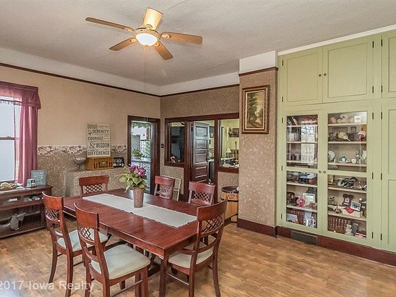 Almost like a vacation home, this lovely 2BR brick, home is decorated in the 1920's style. Original cherry trim and original window style in vinyl. Floors are laminate. Roof is a couple of years old in the 1920's style. Woods, the bike tail, and the Raccoon River fill your western view. The back yard is privacy fenced. To the north is the guest house with two car plus garage tucked under. It was built about 6 years age to mimic the home. All brick, with all utilities and wrap around covered porch on the south and east. Open floor plan. Ideal for guests, older children or mothers in law. Imagine living in the country with only a 10 minute walk to town.