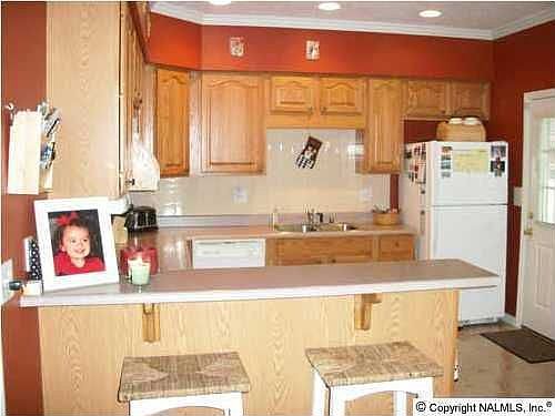 Charming two story white patio home with lots of extras! The kitchen has a tile backsplash and light stained cabinets w/eat at bar,bay window in breakfast area, there is a gaslog fireplace in the livingroom, covered front porch, back deck, two car detached garage,gazebo, decorative storm door, whirlpool tub, separate shower in downstairs master, walk in closet, two large storage closets upstairs. large back deck and covered walkway to garage. New roof in 2009. Lots of storage!