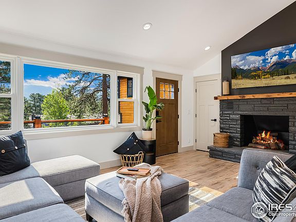 Welcome to this meticulously remodeled home, designed by local architect Thomas Beck. This residence has undergone a complete transformation, inside and out, featuring an array of modern smart home features.Inside, the living room invites you with a grand wood-burning fireplace, perfect for those cooler months. The kitchen is a chef's dream, with custom quartz countertops and sink and a designer-built 'river table' adding a unique touch. The home offers flexible living spaces to suit your needs. The primary bedroom suite can be adapted into an additional living area, complete with a full kitchenette, including a refrigerator, sink, dishwasher, microwave, and private entrance perfect for hosting friends or family. You'll also appreciate the large laundry room with ample storage space. And that's just the beginning-there are so many more delightful updates and features throughout the home waiting for you to discover!Step outside, and you'll find yourself in a peaceful neighborhood surrounded by nature. The home sits on a wooded lot, offering tranquility and a natural setting where wildlife is often seen. With new quarter log siding and three brand-new Trex decks, you'll have plenty of space for outdoor entertaining and relaxation. There's even RV parking for your travel adventures.Living here, you'll have the best of both worlds-close proximity to downtown Estes Park and Rocky Mountain National Park, yet away from the hustle and bustle of traffic. Enjoy all the outdoor activities Estes Park offers, including golfing at the nearby course, working out at the rec center, or taking in the scenic beauty of Lake Estes. With world-class hiking trails just minutes away, adventure is always within reach.This exceptional property blends modern amenities with the natural beauty of its surroundings. Home has active cameras on exterior.
