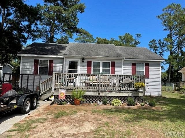 Great location on First St. Easy bike ride to get to First Flight Schools, Monument or the Grocery Store. 2 bedrooms 1 bath home that has a huge yard. One bedroom is large enough with the right imagination, you can likely add a bathroom or an additional bedroom. The home is well maintained and we have a pre-listing home inspection on file for serious buyers. This would make a great starter home or rental. Perfect location for a second home with easy access to Bay Drive, the public sound access and boat ramp.