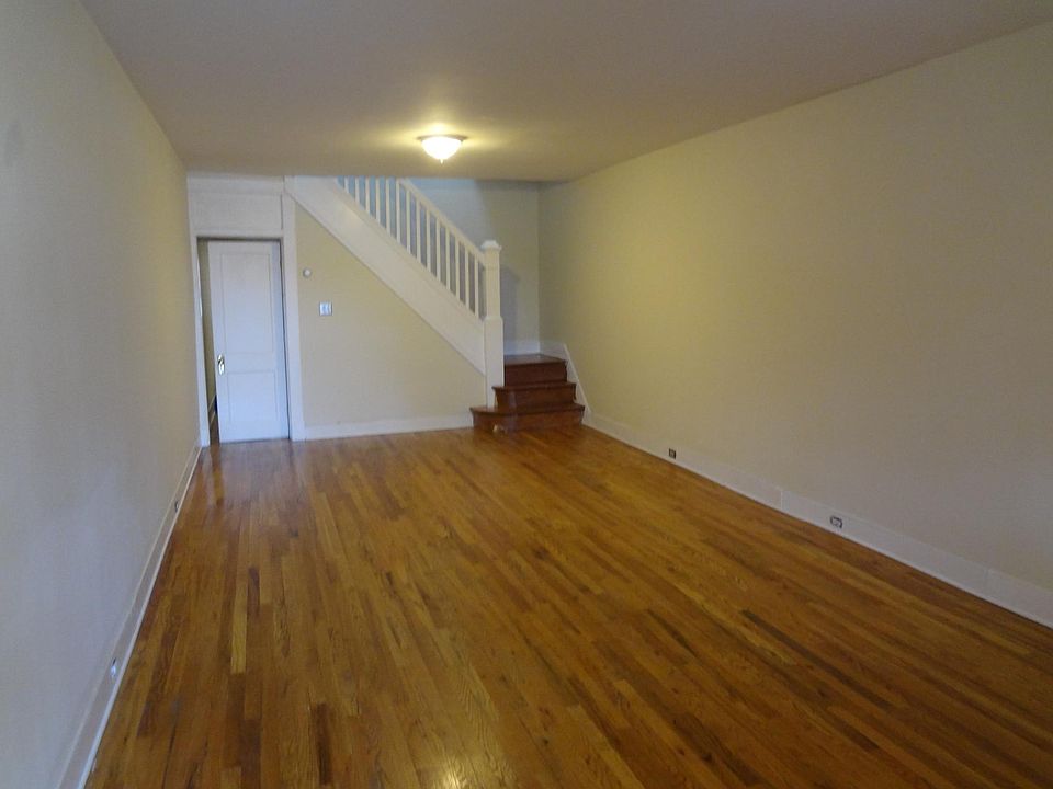 Renovated 3 Bedroom, 1 Bathroom Rowhouse located on quiet one way street. Hardwood floors throughout. 1st Floor: Living Room 12' x 26', Kitchen 12' x 15' 2nd Floor: Front Bedroom 12' x 11', Middle Bedroom 11 ' x 9', Back Bedroom 12 x 9". Full Bath located on second floor. Large Basement offers plenty of storage. Washer/Dryer located in basement. Basement for storage only. Front porch and small fenced in backyard. This is a non-smoking unit. Sorry we can not accommodate dogs, CAT only. Gas/Electric and Water /Sewage responsibility of tenant and not included in rent.