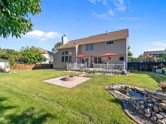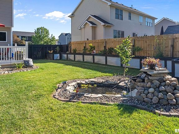 This beautiful Eldridge 2-story house offers over 3,000 sq. ft. of space with 5 bedrooms, 4 full bathrooms, and a 3-car heated garage. The great room features 20 ft. ceilings and a wood burning stove. Open-concept kitchen with oak cabinets comes with stainless steel appliances and has plenty of room for entertaining. Huge master bedroom on upper level with walk-in closet and recently updated master bath with tiled shower. Enjoy the finished basement with projector screen, dry bar with beverage fridge, full bathroom and 5th bedroom with egress window. Laundry in on the upper level, but there are additional hookups in the basement. The basement also has a storm shelter if ever needed. Beautifully landscaped backyard with fire pit, along with the detached storage shed. Home is owned by Realtor Licensed in Iowa.