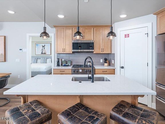 Revel in gorgeous views of the Deer Valley and Park City mountains from this high-end property. This designer appointed condo is ready for you to enjoy or put in the rental pool immediately. It comes fully equipped down to the knives and forks. The kitchen has a gas range, a huge pantry, and quartz counters. The ensuite bedroom has a luxurious king bed, the second bedroom is furnished with two queen beds, and in case you need an extra bed the living room sofa is a queen bed sleeper sofa. No need to take home dirty clothes because there is an in-unit washer/dryer.