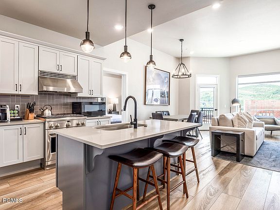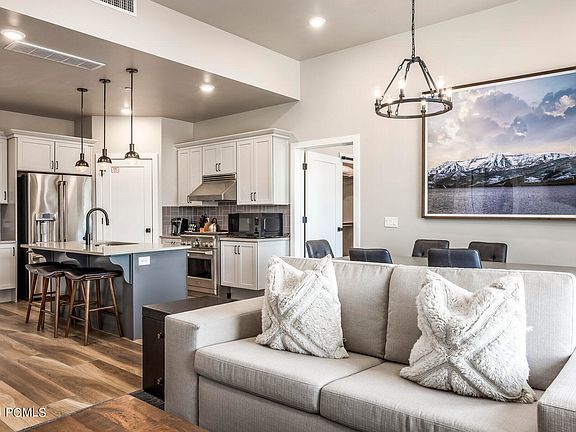 Elevate your mountain getaway in this luxurious Black Rock Resort condo with the Fully ADA compliant condo on the entrance level. Showcasing rare 12' ceilings, this designer condo seamlessly blends comfort and elegance. The heart of the home is a gourmet kitchen, complete with a gas range, generous pantry, and sleek quartz countertops. Unwind in the lavish master suite featuring a plush king bed, or utilize the second bedroom's two queen beds. For added flexibility, the living room offers a queen sleeper sofa. Convenience is key with an in-unit washer and dryer. The Black Rock Resort elevates your lifestyle with its impressive amenities. Take advantage of the shuttle service to nearby ski resorts and Main Street, or enjoy on-site facilities including a pool, gym, steam room, sauna, and an expansive game room. Future developments promise an even larger pool and gym, plus an event center with an NHL regulation hockey rink. Your comfort extends beyond the condo with an assigned underground heated parking space. The resort also houses a coffee shop, restaurant, ski/bike rental shop, and a vibrant bar. Perfectly positioned, this property offers easy access to world-class skiing, Park City, Jordanelle Reservoir, and extensive hiking and biking trails. Salt Lake City International Airport is just a short drive away. And one more thing, this unit is exempt from the extra 1% property tax applied to developer units.