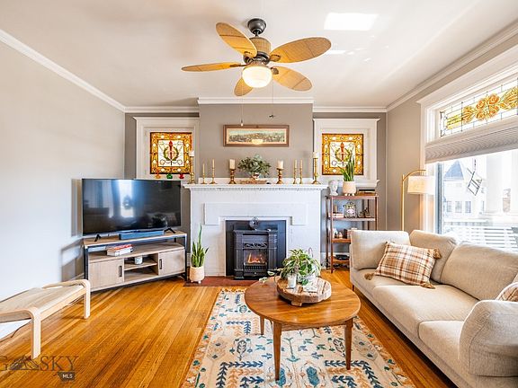 A traditional Romanesque style home updates thoughout. This classic home in uptown Butte has many beautiful features intact. The front sitting porch is covered with stunning mountain views to the south. Enter the new front door to a wide entry way with pillars. A staircase will take you to all three floors on the upper levels. Off the entry is a sitting room with pockete doors, formal living room & dining room with original plate rail. Note theo original stained glass windows. The kitchen with original "beadboard wainscotting" is updated with new cabinets, countertops and appliances. Original hardwood floors are refinished & new carpeting in two bedrooms. The second floor has 4 bedrooms & bath with tub/shower. Onto the third floor is a bedroom with stunning built ins for or library which displays original craftsmanship. Views from bedrooms on both the second and third floor face south for additional views. The attic dust has been mitigated through the Butte Silver Bow Heavy Metals Program. The basement has a cement floor & provides great additional storage. The roof is new, plumbing updated, gas insert in fireplace, refinished hardwoods, new light fixtures, & freshly painted. The property is close to the walking trail, MT Tech, St James Hospital and uptown shopping.