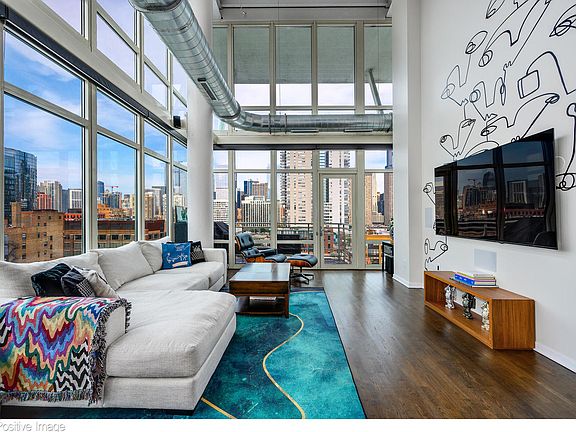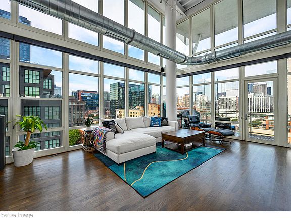 This West Loop Penthouse offers floor to ceiling windows extending 23 feet. Expansive skyline views from all rooms and an abundance of natural light. Spacious loft can easily be converted to 3RD BEDROOM if needed. Hardwood floors throughout entire unit with recently updated kitchen and bathrooms. Large kitchen island leading into living room and out to steel balcony provides great space for entertaining. Live steps from SOHO house and Randolph St dining. Conveniently located by expressway, L stop, grocery stores. On-sight doorman, exercise facilities, common area terrance are features of well maintained building. Extra wide parking spot in heated garage included with price.