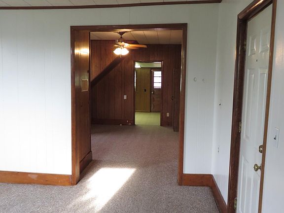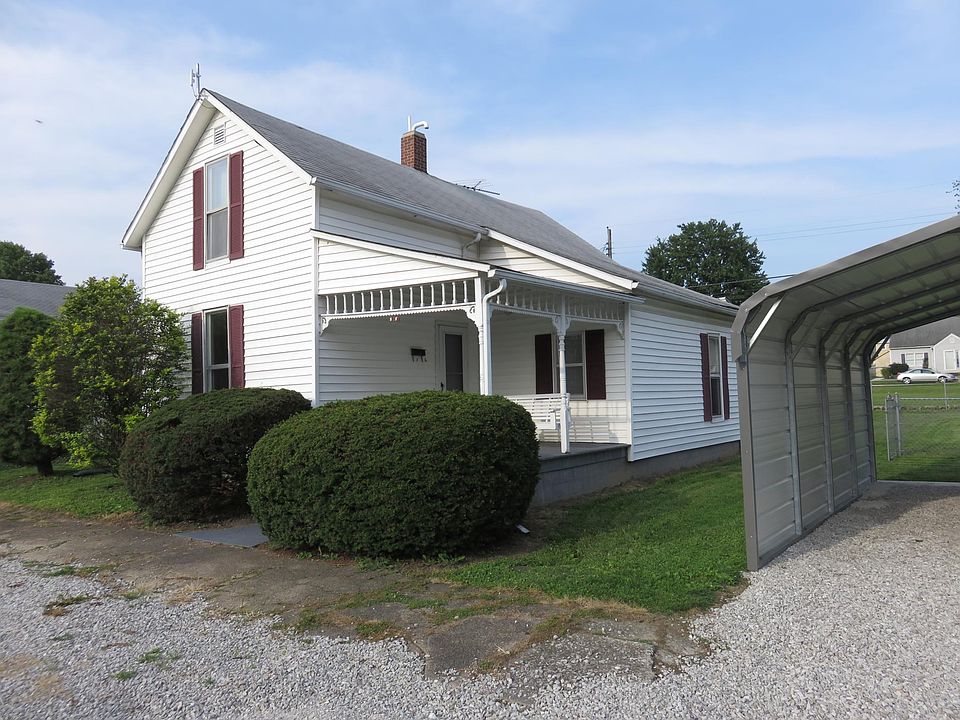Three bedroom, two story house with one car sided carport. Gas heat, central air conditioning with additional window unit upstairs. Whirlpool stainless steel refrigerator and gas range. Downstairs bedroom is carpeted and upper 2 bedrooms have vinyl flooring. Front porch with swing, and covered patio on the back. Utility shed. Metal fenced backyard. Located 25 miles SE of Terre Haute, 18 miles south of Brazil. 12 miles south of I-70 on SR59. Absolutely no pets! Minimum one year lease. $875 rent and $875 deposit. Enjoy small town living in the Mayberry of the Midwest! Tenant responsible for all utilities: electric, gas, water, sewer and trash