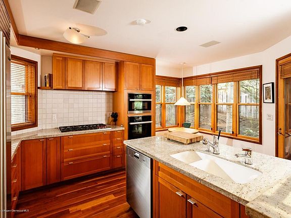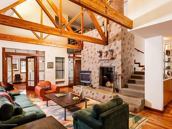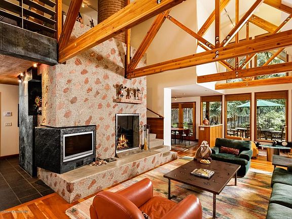 This contemporary style home on Waters Avenue located in the downtown core, three blocks to the Silver Queen Gondola. Designed by famous architect Harry Teague, the custom ''one of kind'' feel of this home features open living spaces, vaulted ceilings, warm wood accenting the floors and ceiling beams, a farm stone wall cleverly encircled by a staircase to the upper level, built in cabinetry and shelving areas, interior etched glass French double doors and windows offering light streaming in from every direction.