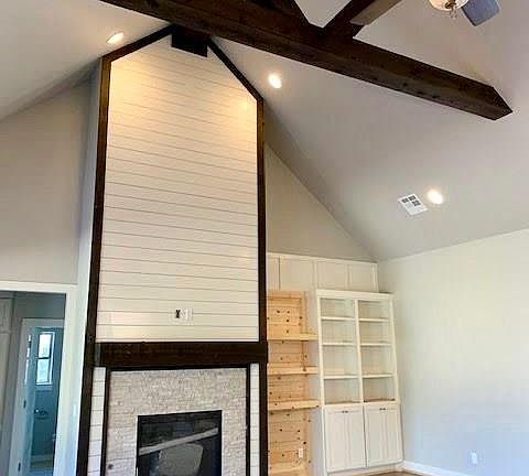 Quality & attention to detail from the moment you step through your double front doors. Spacious & grand will come to mind upon entering the foyer. Custom castled kitchen cabinetry incl interior lighting. Large kitchen island overlooks the grand living area. Stainless steel appliances, solid granite tops, marble kitchen backsplash, brushed nickel hardware & canned lighting are just a few of the amenities that complete the gorgeous kitchen. Beamed ceilings & stack stone fireplace add to the elegance of your new home. Private access from master retreat to the backyard covered patio. Private master bath boasts a relaxing soaker tub & separate walk in shower. Spacious master closet w/access to the laundry area. Upstairs bonus room completes the floor plan with a full bath. Ample bedrooms all complete w/ceiling fans. Real hardwood flooring throughout. Flex study/office/bedroom (has closet) Taxes are not assessed yet. Professional photos coming soon! Estimated completion date mid December.