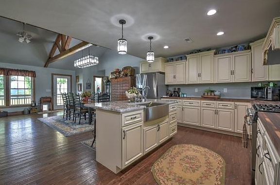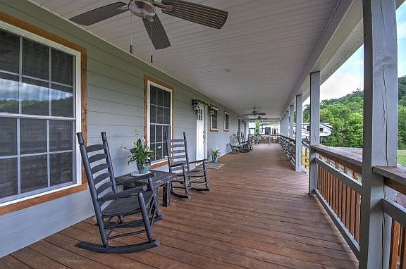 New Construction Home on 35 +- acres ,with a Million Dollar View! Bring your rocking chairs and enjoy your very own wraparound porch with views from all sides. Inside you will find a soaring vaulted ceiling with beautiful wood beams, stone fireplace, and open floor plan with 3/4 hand scraped hardwood floors. The home offers custom cabinets, granite counters, stainless farm sink, custom Gas hood, and luxurious gas stove/oven. There is a laundry room on main with custom door, and 1/2 bath off garage. There is a master on main with walk in closets, soaking tub, and tile shower with custom features. The home has a finished basement with 2 bedroom, sitting area, and game/rec. room. The basement has full shower and walkout area so it could be used as a mother in law suite. Buyer to verify acreage and taxes. Home is new so the taxes are an estimation. Note Refrigerator and hot tub will not convey. The light over dining room will be replaced with a similar light.