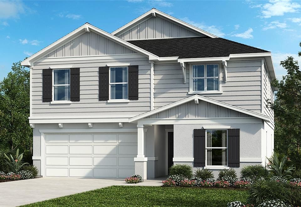 Pre-Construction. To be built. This two-story home is sure to impress with vinyl plank flooring, 9-ft. ceilings, and an extended covered patio perfect for outdoor entertaining. On the first floor, you’ll discover a secondary bedroom, a full bath, and a spacious great room and kitchen. The kitchen showcases 42-in. upper cabinets in mist, granite countertops, an island, a large corner pantry, a Moen® faucet, a stainless-steel double basin Kohler® sink, and stainless-steel Whirlpool® appliances. Moving upstairs, there are three secondary bedrooms with sizeable closets, a full bath with an extended vanity, a spacious loft area, and a dedicated laundry room. The primary bedroom boasts a large walk-in closet and a primary bath featuring an extended dual-sink vanity, a water closet, a garden tub, and a walk-in shower with tile surround.