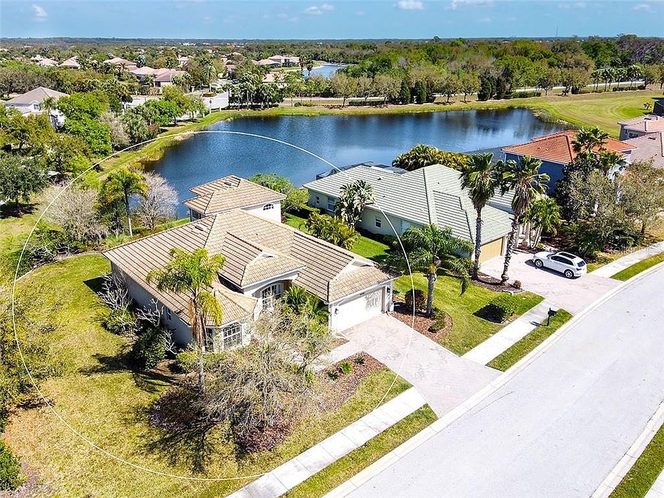 Wonderful 3 BR plus Den and Bonus Rm in Gated Stoneybrook Golf Community! Beautiful Lake View and .31 acre! Plenty of room for a pool but no need - walk across street to amenity center and resort pool! All living space on 1st floor except for generous 18x14 Bonus Rm. Bright and open family rm with access to outside. Living and Dining rooms with tray ceiling with crown molding and sliders to lanai. Den/Office with wood flrs and ceiling fan. Kitchen offers wood floors, granite counters, maple cabinets, breakfast bar, SS appliances & center island, large pantry and breakfast nook with sliders to lanai. Spacious MBR suite with walk in closet with organizers, dble tray ceiling w/crown molding, dual sinks, tiled shower and sliders to lanai. 2 spare BRs with new carpet. Enjoy peaceful lake view. New ACs and $1000 credit for MBR new flooring. All plumbing, electrical, sheetrock, flooring, etc only 6 yrs. old due to gutting by builder for defective drywall. It's completely remodeled and you have a much newer house than date originally built! Washer & Dryer will be replaced with new Whirlpool ones. Resort style living with Heritage Harbour Golf & Eatery (no mandatory fees), heated resort pool and spa, fitness center, tennis, pickleball, active rec center, basketball, volleyball, shuffleboard, bocce ball, corn hole, picnic areas, dog parks, fishing pier and more! Close to Anna Maria Island's beautiful beaches, shopping, I75, downtown Sarasota & Lakewood Ranch and airports! CDD fee in taxes. Welcome to Paradise!