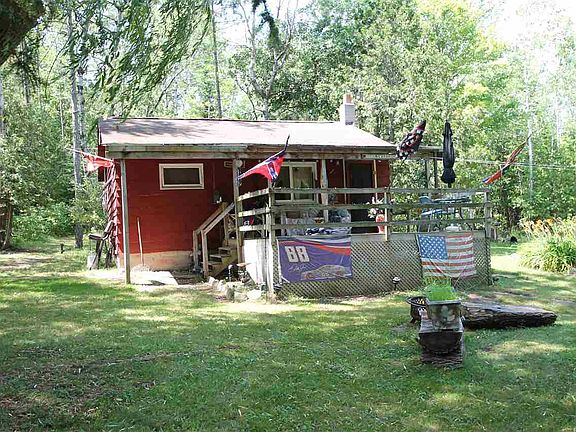 Tucked in the woods back off Lord Road is this 2 bedroom 1 bath cabin on 5 lovely acres just 1 mile north of the City of East Jordan. This property offers an excellent location with many features to enjoy including seasonal views of Lake Charlevoix. There is a babbling brook that the runs through the property and spills into a small pond in the woods. Mature trees and some established flowering gardens with plenty of space for outdoor activities. A large deck that is partially covered welcomes you upon arrival to this quaint home. Knotty pine interior throughout the living room and kitchen give it that up North feel. Two identically sized rooms with closets, one serves as a bedroom and the other hosts the laundry area. An efficient bathroom with shower, compact vanity w/sink, and the lavatory. Lastly, a galley style kitchen with two windows for lots of natural light as well as provide ventilation and views of the wildlife that frequent the property.