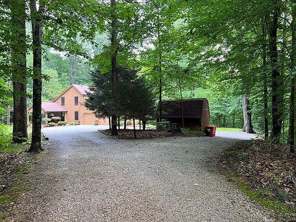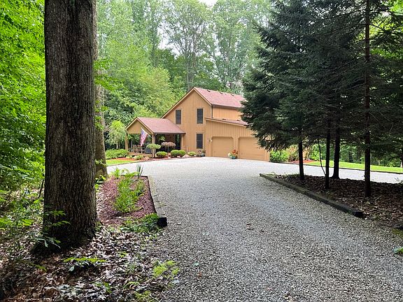 Don't miss out on your own slice of heaven. If you are looking for peaceful and secluded, look no more. Over 5 wooded acres surrounding an amazing home with large lofted living room, Oversized 2 car garage, 3 bedrooms, and large eat in kitchen. Large back deck with an amazing view. Lots of wildlife including turkey, deer, rabbits, and birds. Separate storage shed that is large enough for mower and all your other fun toys. Round about driveway with extra parking large enough for RV or boat added in 2020. Home has been meticulously maintained. Updates: new water line from meter to home (2018), exterior home painted (2018), Gutter guards (2022),bedrooms painted within the last year, new A/C June 2023, living room/kitchen painted July 2023