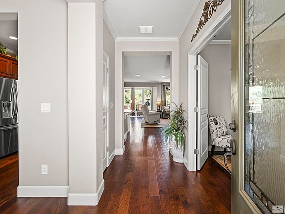This is a stunning "Alpine Meadow" model plus hearth room situated on a very private .21 acre cul de sac lot in Sierra Canyon. The interior is as fabulous as the exterior. Features include hardwood floors, remodeled kitchen with top of the line appliances, slab granite counters, cherry cabinets, crown molding, ceiling fans, hearth room w/ fireplace, custom neutral paint, surround sound speakers installed, glass front door, deluxe laundry with extra cabinets and large sink, 5" baseboards and much more., Exterior features include beautiful low maintenance landscaping a built in propane patio firepit, rain gutters installed, insulated winterized extended garage with storage areas. 220 EV outlet in garage and an over-sized front courtyard. This home has it all inside and out. Located adjacent to a large cul de sac and only one neighbor. Be sure to check out the aerial photos to fully appreciate this unique location.