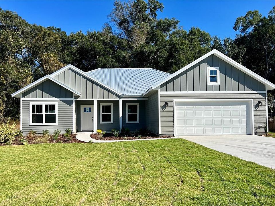 Gorgeous New construction 3bd 2ba home in the lovely gated Riverwalk of Fanning Springs. Home sits on a quiet loop that backs up to green space. You will fall in love with this home and its open floor plan with its Luxury Vinyl plank flooring throughout, crown molding, beautiful granite countertops, Custom wood cabinetry and stainless steel appliances . The spacious Master Retreat features a tray ceiling, large walk in closet, double vanities , and beautiful large tiled walk in shower. 2 car garage, Instant hot water heater, metal roof, hardie-board / board & batten siding and landscaped/irrigated yard! The Riverwalk is a beautiful community that features A 6000 + clubhouse, gym, sauna, Pool, Tennis courts, walking/biking trails and more! The communities paved trail connects to the 32 Mile Nature state trial where you can take a short bike ride to the River. Schedule a time to come and tour this beautiful home!