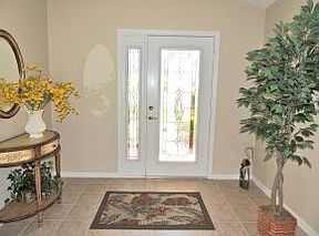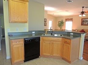 Golf course and water view - supreme location & curb appeal with professional landscaping. This home is furnished and has a custom glass entry door, wood flooring in living room, upgraded appliances, fans & lighting plus a 4 ft extended garage. Wow!