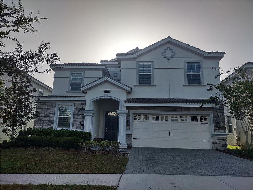 The best deal on an 8BR in Champions Gate! This home has been nicely Furnished and is located a short walk from the Oasis Amenities Center in the gated resort community "Champions Gate". The home offers a beautiful private swimming pool and adjoining spa, a private movie cinema, 2 living rooms (upstairs living room and downstairs living room), stainless steel appliances, and granite countertops throughout the kitchen and all bathrooms. The garage has been converted into a game room with billiards, an air hockey table, and foosball. This is one of the more modern homes built in the neighborhood with the newer colors (white exterior with gray cement tile roof and also beautiful interior with white/gray accents). All furnishings, decorations, and housewares are included in the price. The property is currently managed and doing very well with short-term rentals! This will make a great vacation home and investment or can be lived in as a main residence (no restrictions on length of stay). The community has a golf course, resort-style amenities center with a gym, cinema, arcade, splash pad, lazy river, waterslide, resort pool, tiki bar, restaurant/bar, basketball court, tennis courts, volleyball courts, and so much more. The community is gated with 24-hour security. The home is conveniently located to parks, shopping, and dining. You, your family, your guests, and your renters will give you 2 thumbs up for this tropical paradise!