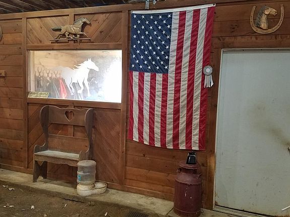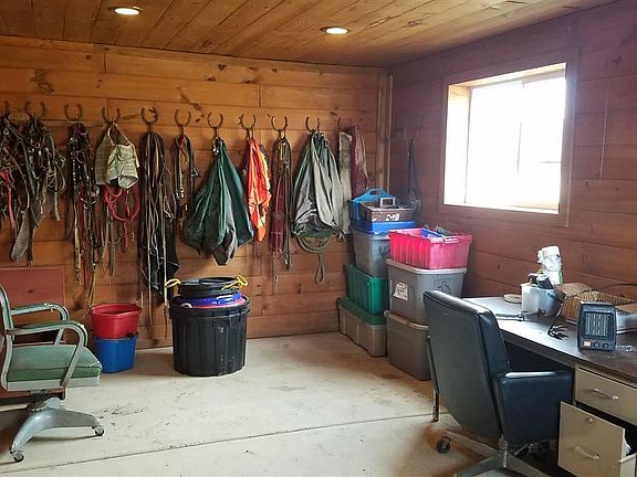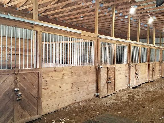 Horse Lovers Paradise!! Hang your spurs here!! 13 Acre Horse property with 5-stall barn (40'x140') with tack room,equipment storage, and direct access to approx. 5 acres of pasture. Wooded area in back of property has riding trails, pond, and additional shelter for horses. 24x20 additional shed with cement floor and elec. Home boasts open floor plan, 3 car garage and full basement, partially finished for entertaining! You will love the covered patio/pavilion large enough for family reunions!! Updates include: steel roof, furnace, central air, windows, well, flooring, stainless steel appliances, and more!! Full house and barn generator! All appliances included! Natural gas.