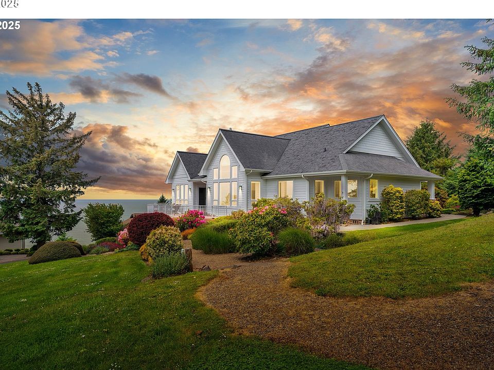 Ocean & Valley Views at this Southview Custom home in Florence, Oregon. Live the coastal dream in this 4 bedroom, 3.5 bath, 3, 184 sq ft custom home located in Florence's prestigious gated Southview community. Enjoy breathtaking ocean and valley views, elegant Brazilian Cherry floors, granite countertops, cathedral ceilings, and a marble gas fireplace. Set at the end of a quiet street, this home offers exceptional privacy and a spacious yard - perfect for pets, gardening, or entertaining. Situated on two separated lots (0.69 acres total) with potential for future development or resale. Just minutes from Old Town Florence, world class beaches, dunes, hiking, and the Siuslaw River - this is coastal living at its finest.