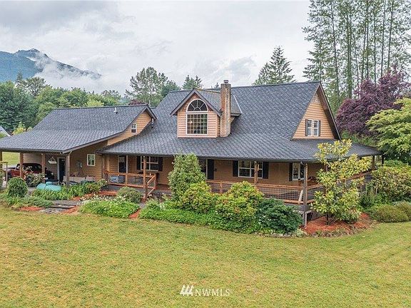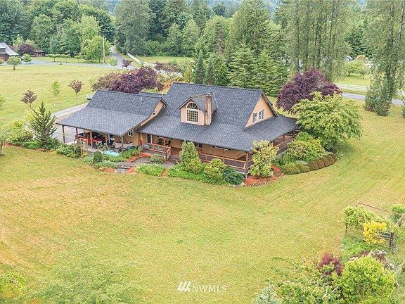 Looking for the perfect 5 acres of serenity? This 4200+sqft craftsman home boast a Grand entry to flex and Great room with a real stone fireplace soaring 2 stories. 2 huge Bedrooms, Media room, Library up & an amazing main floor Master bed & bath with natural rock shower & soaker tub. Mud room enters from the garage to the bright open Kitchen offering large pantry and space for entertaining at the breakfast bar, causal dining along with a formal dining room. Full unfinished basement for storage. The grounds offer 30+ species of flowers, fruits and a beautiful peaceful pond, all on 5 lovely acres of peace and tranquility. Wrap around porch offers a picturesque view of Saul Mt! Over sized 2car Garage & pole building. This is your Next home.