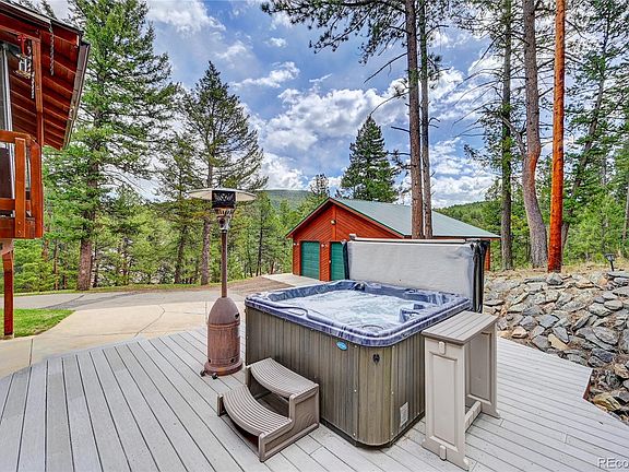 If you are looking for the coolest property in Evergreen HERE IT IS!! This home has been updated throughout with stunning and artistic touches. An amazing oversized 3 car Harley Davidson themed garage was also added by the current owners - it has epoxy floor, built in cabinets with under cabinet lighting, a man door, and is fully insulated. This home has two bedrooms (with space to easily add a third if you need it), three bathrooms (all with heated floors), a fabulous kitchen, amazing game room (that includes a custom pool table & wine closet), and plenty of indoor and outdoor additional living spaces including expansive trex decks. There is a huge hot tub that is nice and private for those awesome Colorado nights at home!! There is a back up generator for emergencies. And for your puppers there is a dog run that is completely enclosed for safety and has a doggie door so your buddies can go in and out as needed.