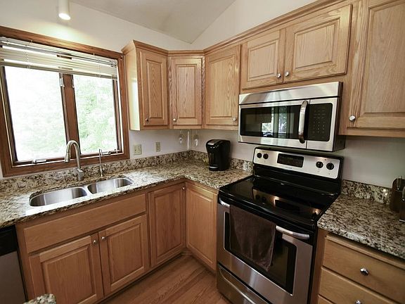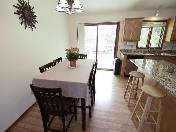 Home is situated on a Large Corner Lot, close to hiking/biking/walking trails and a half mile to Schools and close to Arbor Lakes. Contract for Deed Option Available. Corner Lot, Close to Schools, Arbor Lakes and close highway access. The home features large Living Room, Dining and Kitchen with walkout to a deck overlooking the yard with views of mature trees. There are 2 bedrooms on the main level and a Full Bath. The finished Lower Level includes a Spacious Family Room with Gas Fireplace, another Bedroom and Bath and Laundry. There is another level with lots of space for additional storage. More features of this home include: New Granite Kitchen Counters, Island and Wall Ledge New Under mount Kitchen Sink and Faucet Stainless Appliances Reverse Osmosis Drinking Water System New Hunter Ceiling Fans in all Bedrooms Vaulted Ceiling Finished Lower Level with Gas Fireplace Newly Remodeled Bath with Tub and Tile Surround & Decorative Band Fresh Paint, Carpets Freshly Cleaned New Hardwood Flooring (2013) Ceramic Flooring in Baths Master Bedroom Walk in Closet Lots of Storage Space New Roof and Siding (Fall of 2013) Whole House Humidifier New Water Softener (2015) New Custom Garage Door (2015) with 2 new Openers and Keypad Dusk to Dawn LED auto lights on Front of Garage Driveway replaced 2012 New Gutters (2013) Irrigation System Drop Down Staircase Garage Attic Lots of Extra Storage Oversized 2 Car Garage, Sheetrocked Walls and ceiling Large Deck overlooks big back yard with views of Mature Trees AC (2010) with energy saving switch Call Vicki, REI Real Esstate to schedule a showing 612-250-3014.