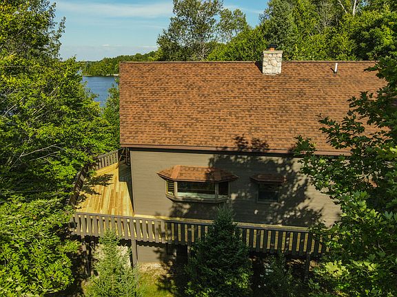 The definition of privacy! Located nearly 3/4 mile down a private drive through mature forest you'll find this spacious home with over 3,000sq ft of finished living space sitting on a beautiful site with 360' of Black River frontage. Landscaped perfectly for maximum privacy while still maintaining beautiful views of the Inland Waterway from the wraparound deck and the wall of windows in the great room. The 3BR, 3.5BA home is highlighted by an amazing great room with cathedral ceiling and a 2-story fireplace, but offers so much more. A master suite upstairs, the oak woodwork throughout, the finished walkout basement, and attached 1-car garage just scratch the surface! The rear of the site also features a large drive-thru pole building with extra large doors perfect for storing your RV or your boat when you're not cruising the 40 mile Inland Waterway out your back door! A rare opportunity that includes privacy, a spacious home, ample storage AND outstanding boating.