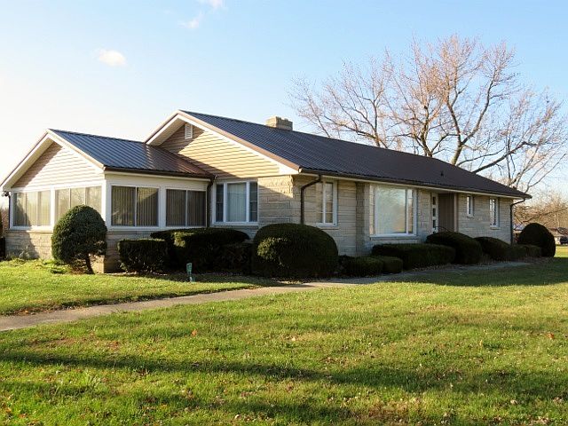 Unique, one of a kind, solid, retro all describes this home!!! You have to come see, there is no way to build this BEDFORD STONE house for this amount of $$! Beautiful views, Large roomy living room and bedrooms with double closets in each bedroom and many build ins, desks and bookshelves, original sun room with pass thru window, main floor laundry, full basement to finish off the way you want! One time used wood burning stove in basement, central air and ceiling heat. Metal roof is only 3 years old!! Come take a look today!!