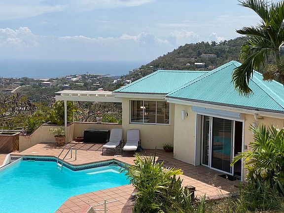 Gracious living personified. Beautiful, spacious primary home or investment . villa. Offering one huge or two large, separate living areas. Each can be used for long or short-term rental spaces. Hallmarks of the home are high, natural, beautiful Cedar ceilings, spacious rooms and spectacular views of the Charlotte Amalie Harbor, the caribbean Sea from everywhere in the villa (except the bathrooms) and as far as the eye can see. Pool with a pool house and exercise equipment, an additional efficiency apartment below the main house. There is a 20 KW, hard wired generator. Use it all as a rental villa as one large space. Live in a portion of the home and rent the other portion as a short or long term rental. Which one is best for you? See private remarks for full address.