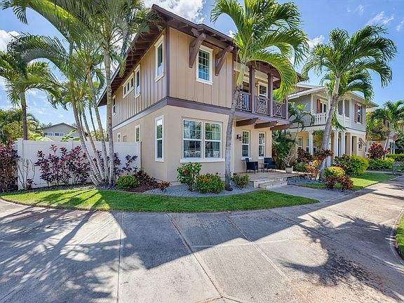 This beautiful 4-bedroom, 3-bathroom home in the highly sought-after Hoakalei community offers the perfect blend of comfort, privacy, and convenience. Located on a rare corner lot with only one neighbor, the home provides an open feel in the backyard and is just steps away from community amenities like a pool, gym, tennis/pickleball courts, and Wai Kai. Inside, the spacious layout includes a full bedroom and bath on the first floor, ideal for guests or multi-generational living. The open kitchen and dining area, featuring a large island, flow seamlessly for family gatherings. Upgrades include ceramic tile flooring, Corian countertops, stainless steel appliances, and a wireless sound system throughout the home. The private, landscaped backyard offers ample space for outdoor activities, while the HOA fee covers high-speed internet and cable. With easy access to recreational facilities, playgrounds, and nearby attractions, this home is a true gem.